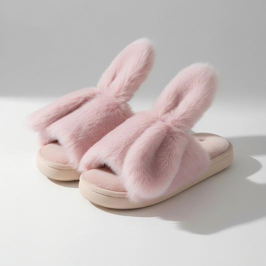 Fluffy Bunny Ear Faux Fur Slides - Pastel Pink